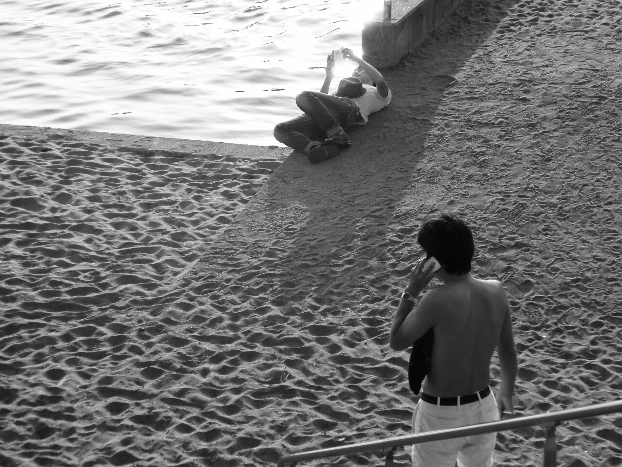 たそがれる女性の後ろから