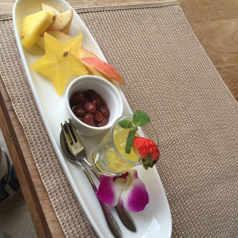 開放的なスペースで食べる朝食