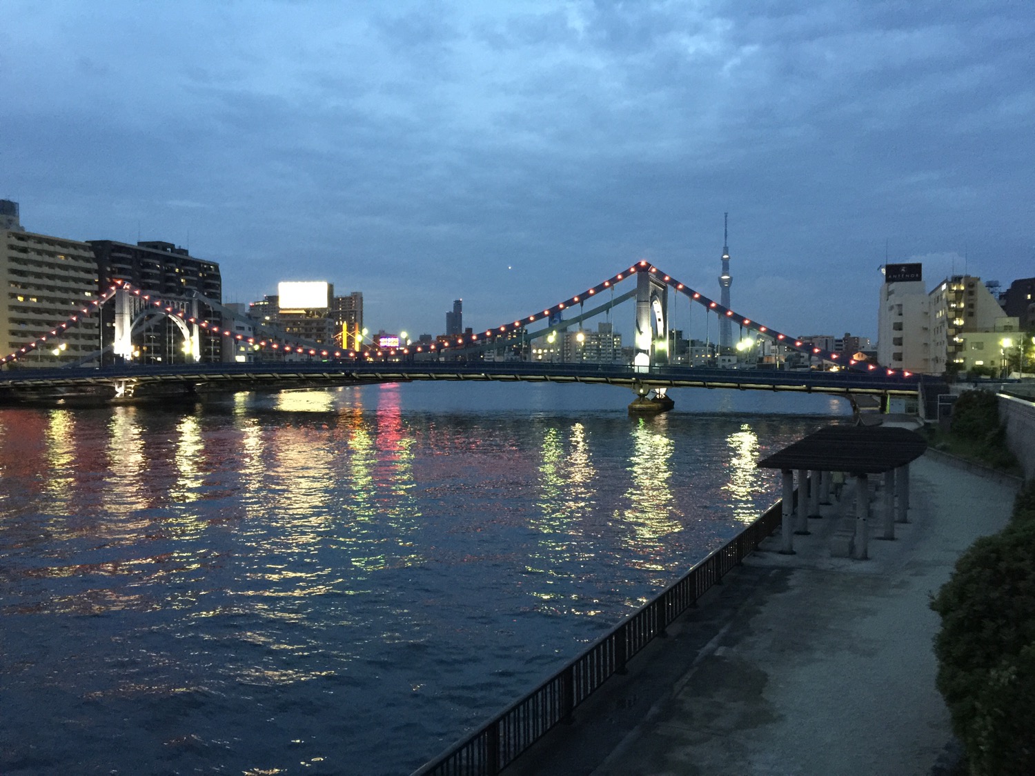 清洲橋がライトアップ