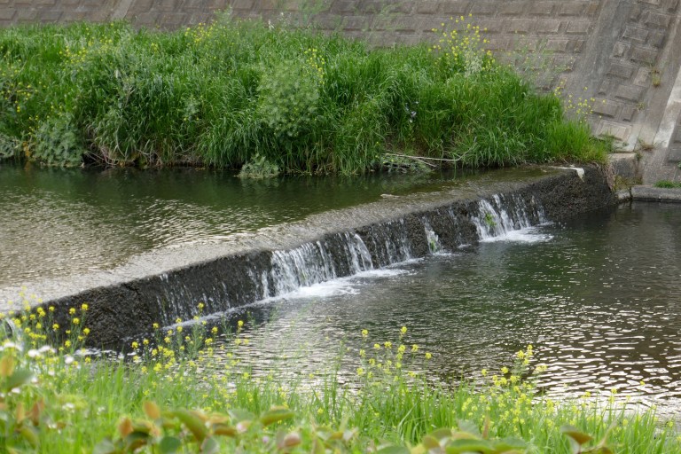 勢い余って浅川へ飛び込む