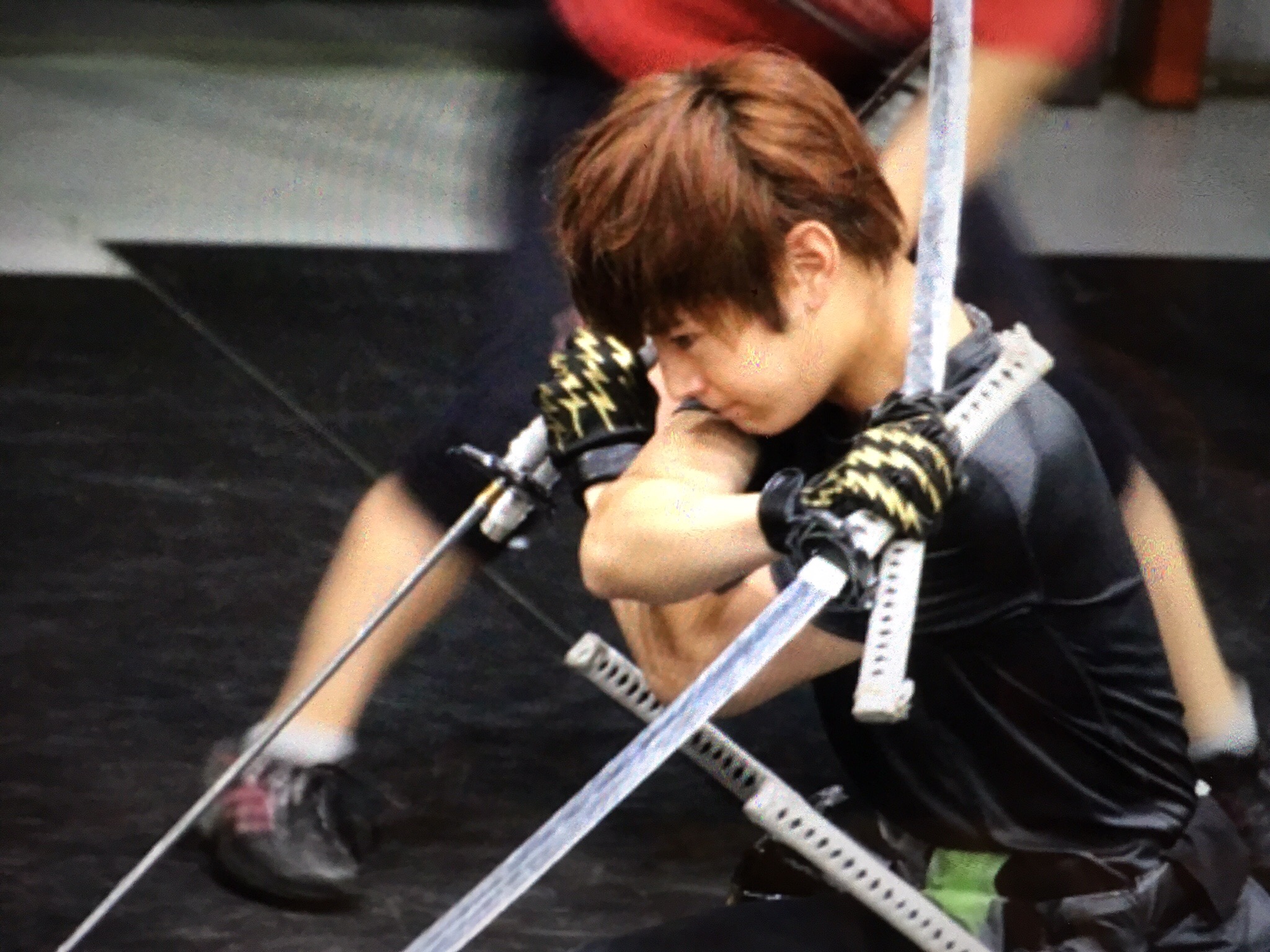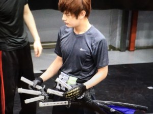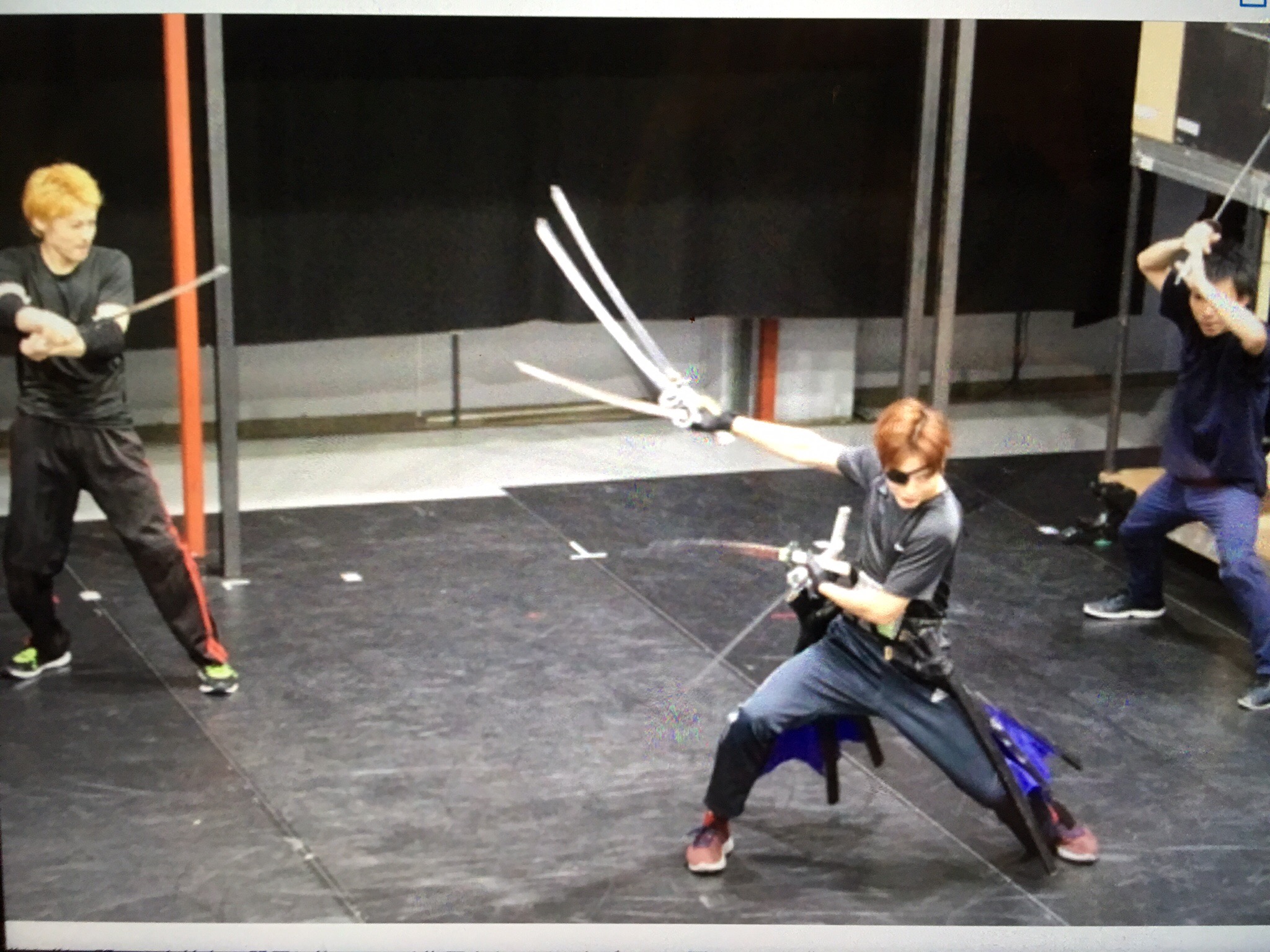 「指の間で刀を持ち、器用に抜いていく塩野さん。インタビューで語っていた“指の筋肉”を鍛えているからこそ出来る技に息を飲みます。見ていたキャストが稽古の邪魔にならないよう、小さく拍手をしていました。」