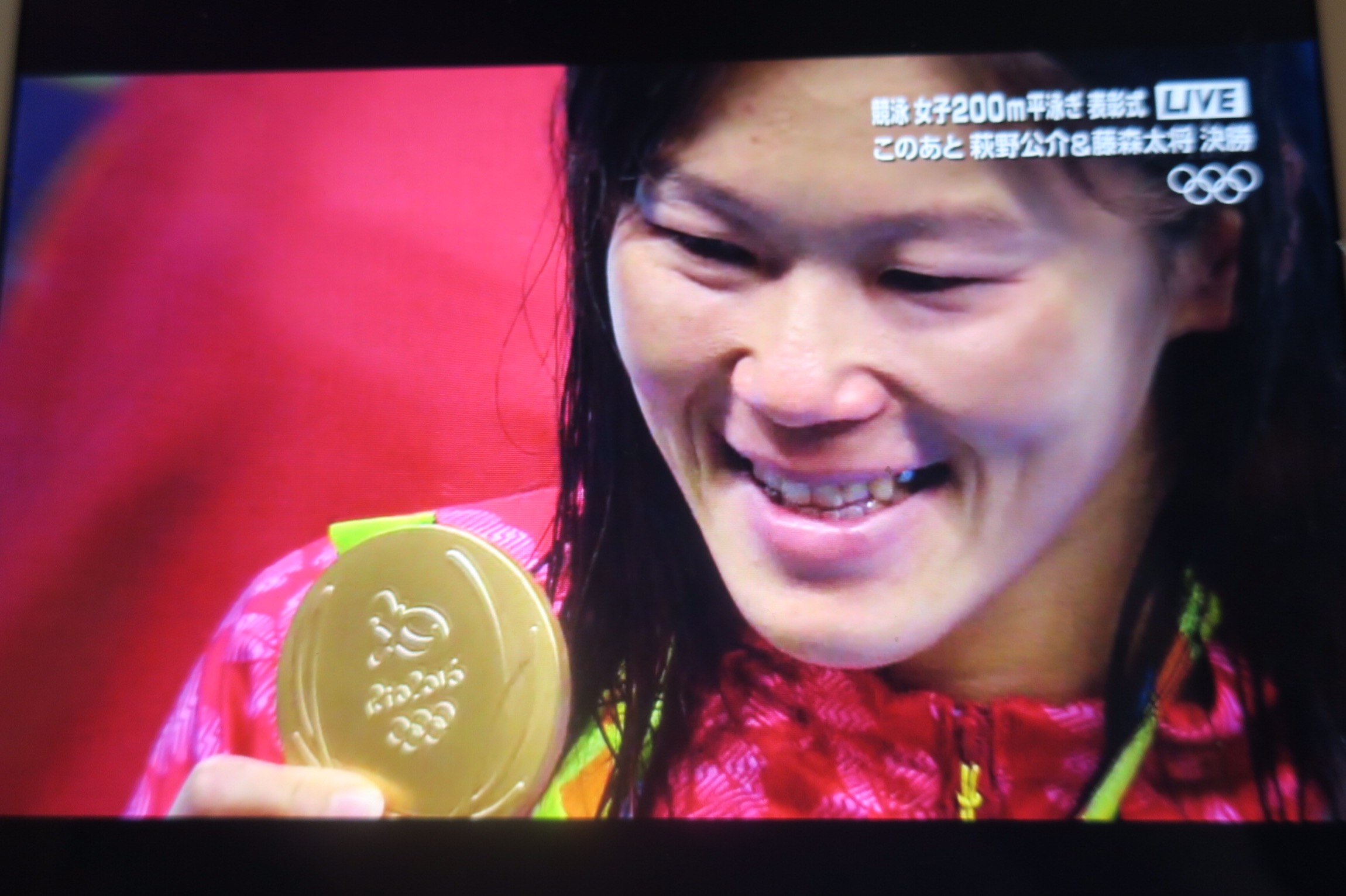 最高の輝きのメダルを手にする