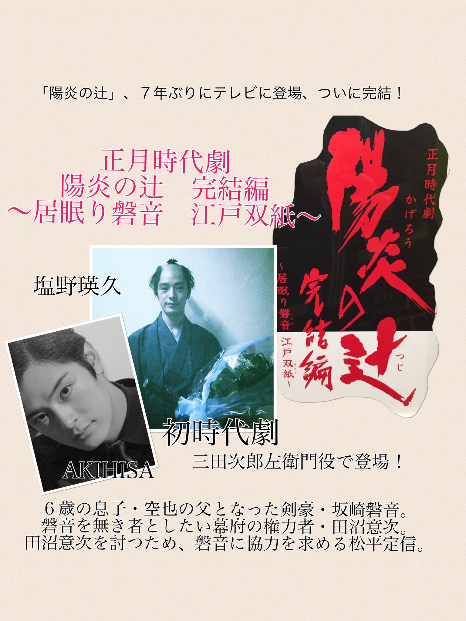 NHKの看板時代劇まで出演してしまう塩野瑛久(お正月時代劇 陽炎の辻 完結編)
