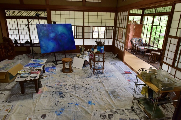 この日本間で作品に打ち込む蓉一
