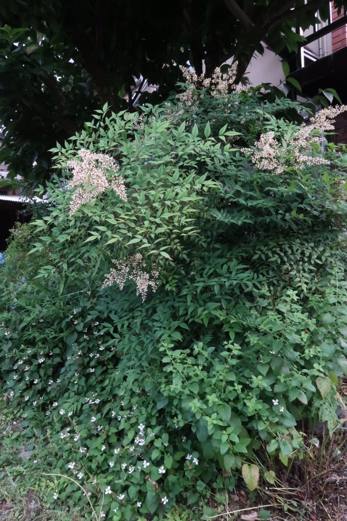 紫陽花の向こうに扇風機が笑ってる