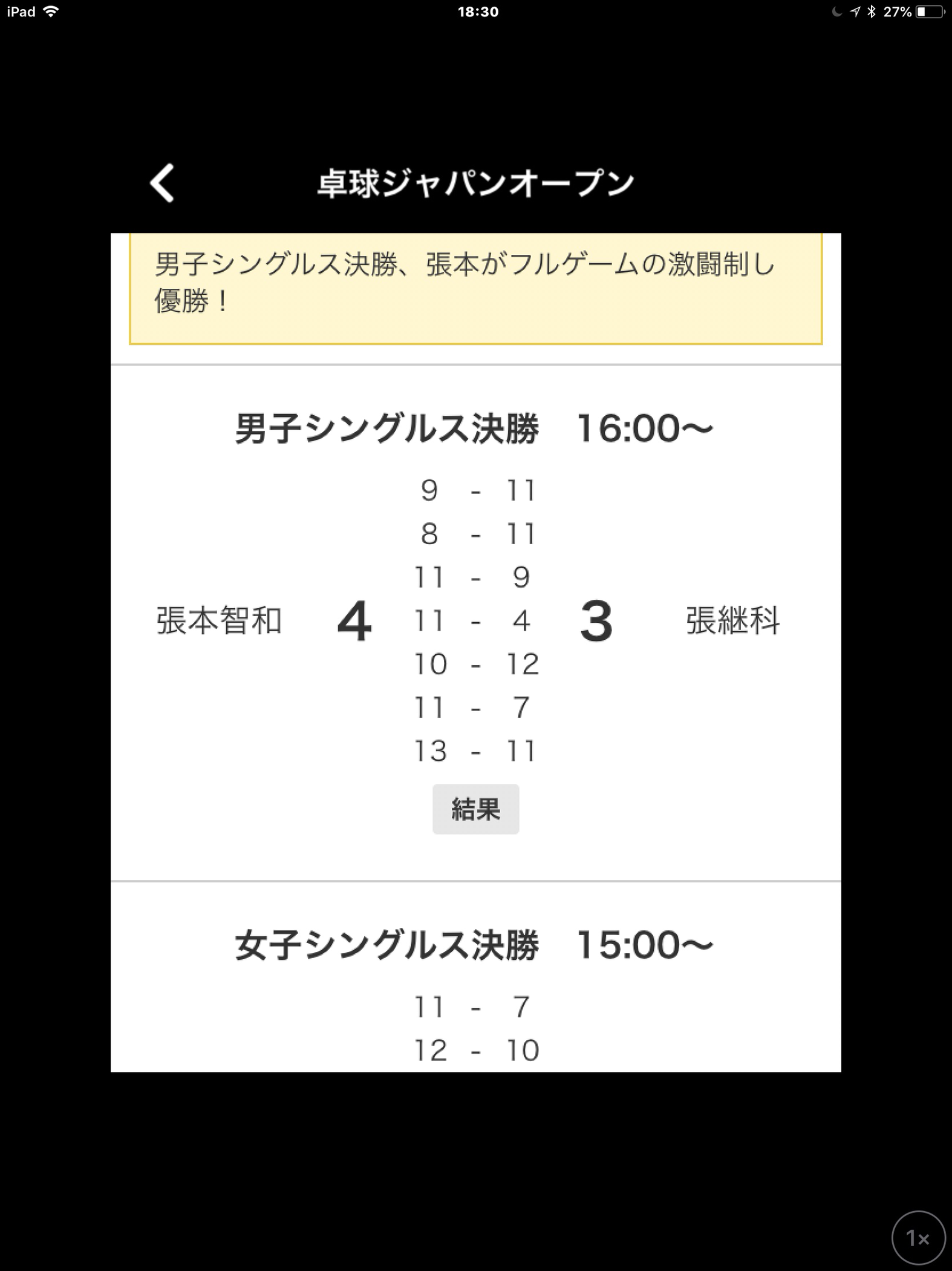 決勝で2-3とリードされた場面。張本は「海外の試合だったらたぶん、ずるずる負けていたと思うけど、(第6ゲーム0-2から)1点を取ってたくさんの方に拍手していただいて、冷静になって戦えた」と