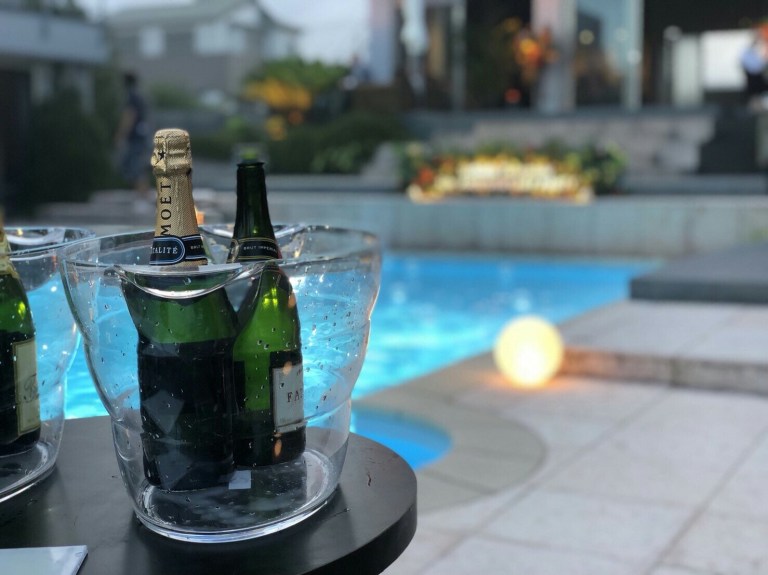 音楽プロデューサーによるシャンペンの洗礼は