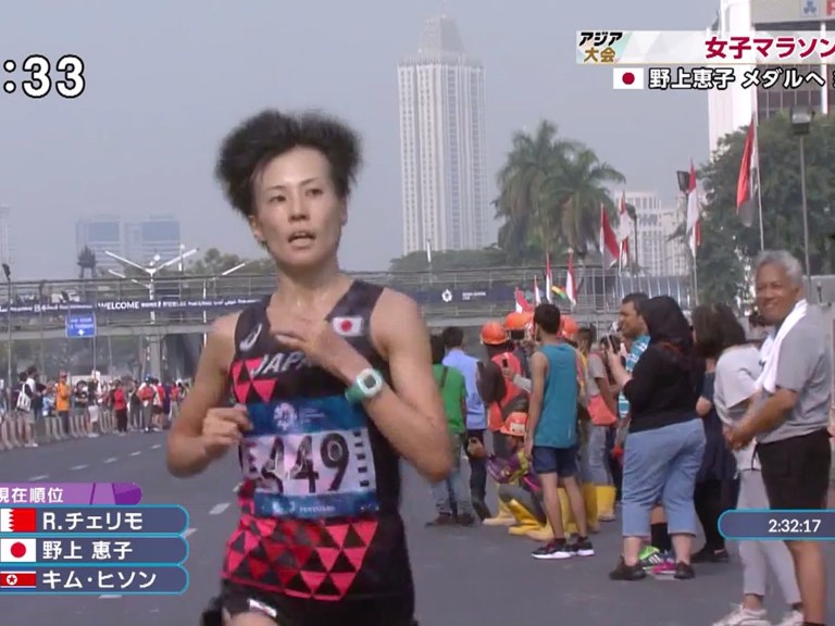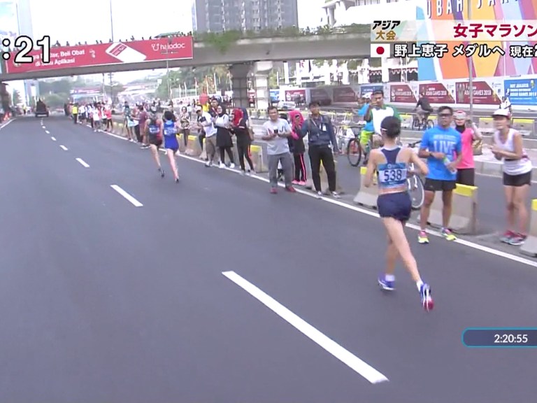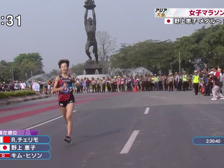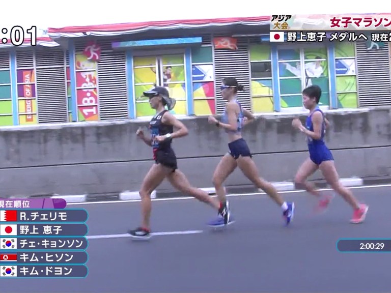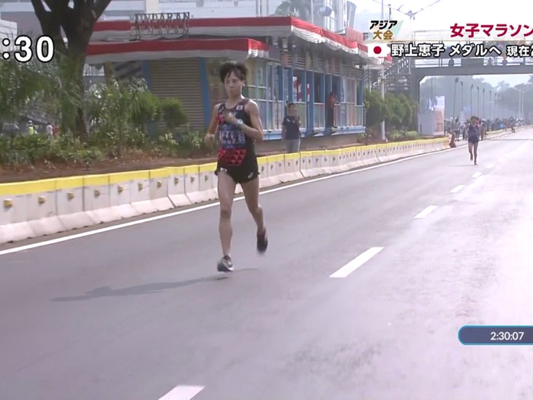 まず韓国の美人ランナーが遅れる