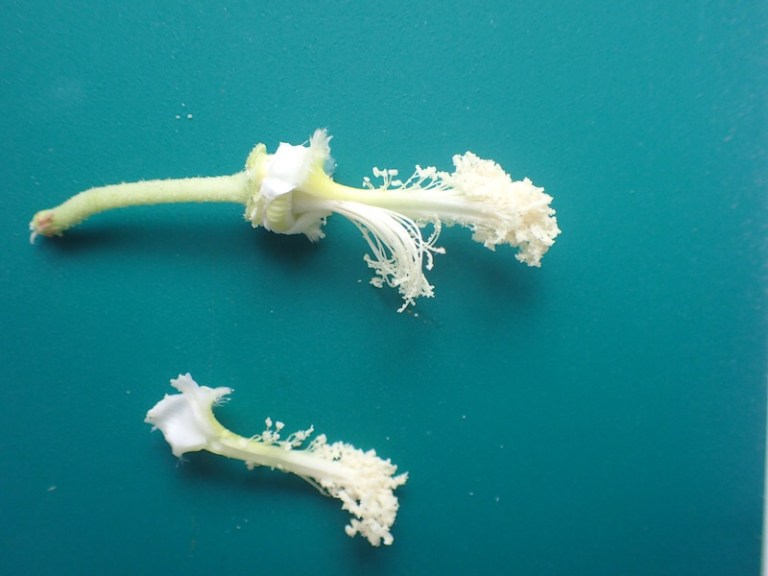 その雌しべを取り出すと既に花粉が付着してますね!