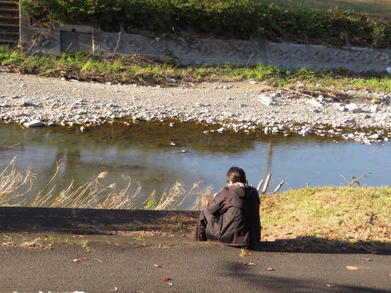 淺川に向かって