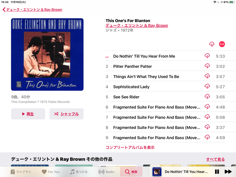 出だしのエリントンの高音のピアノのアッタック音