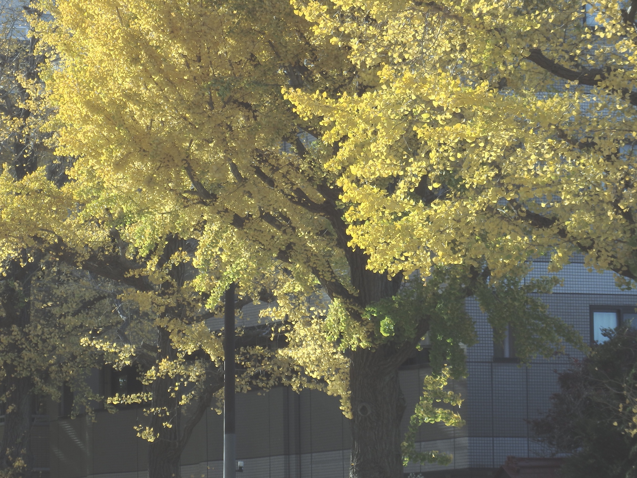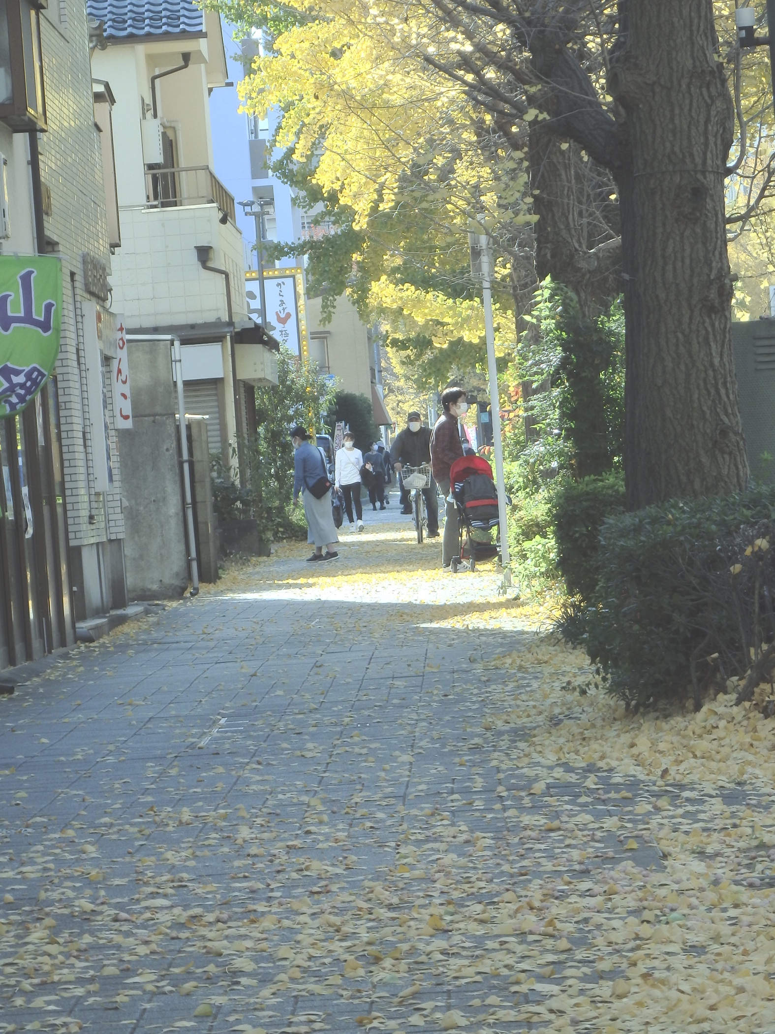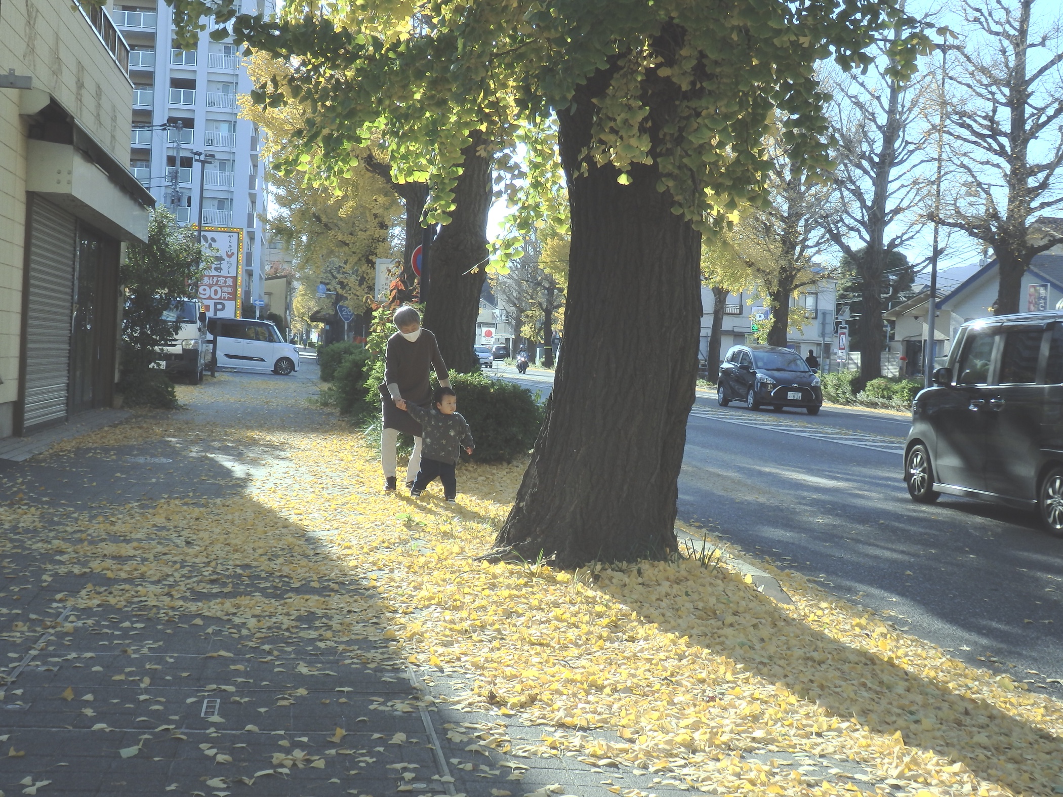 少しでも和らげようと銀杏並木に出る