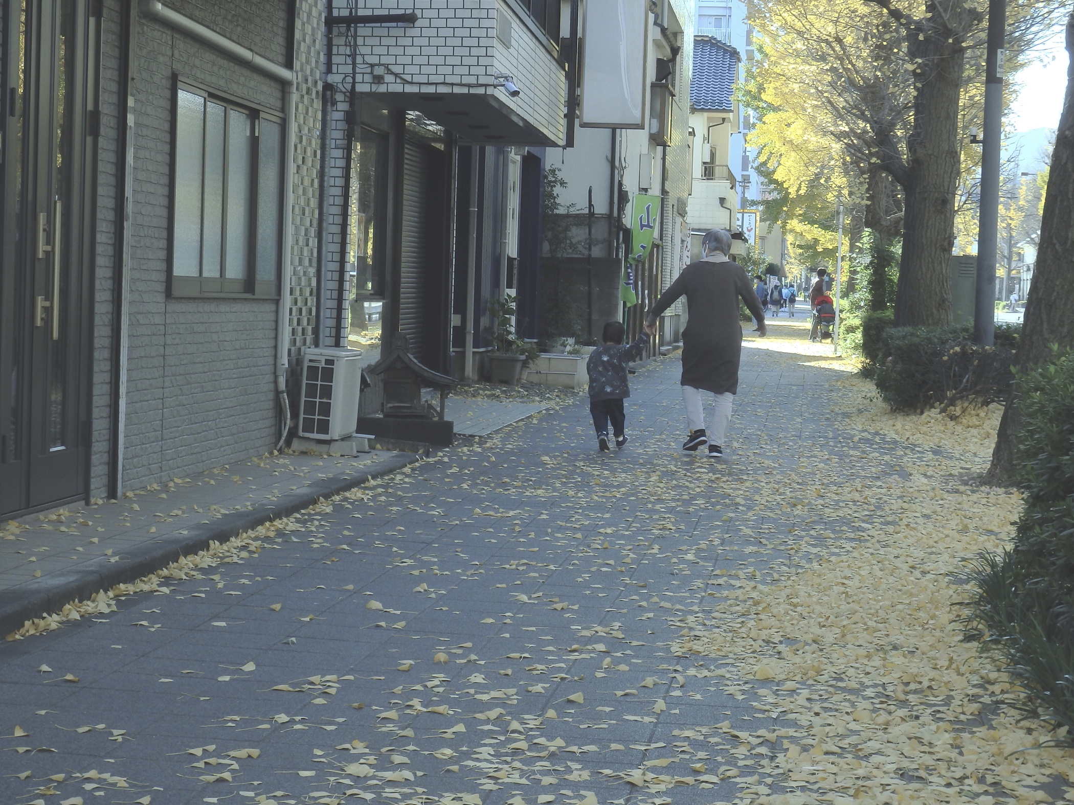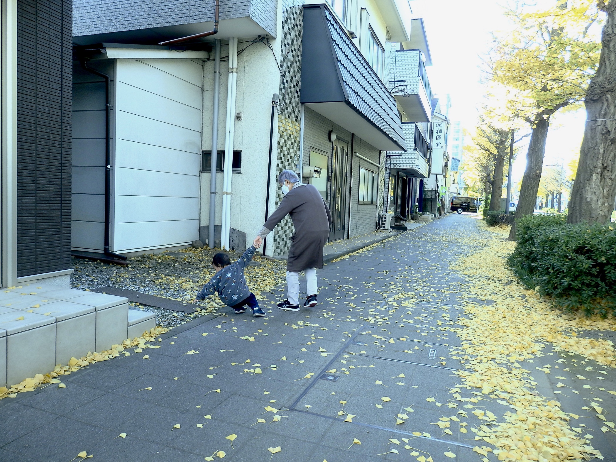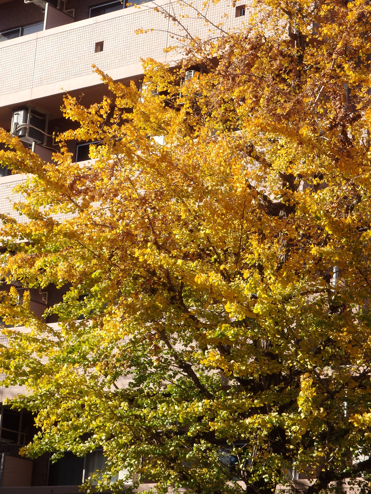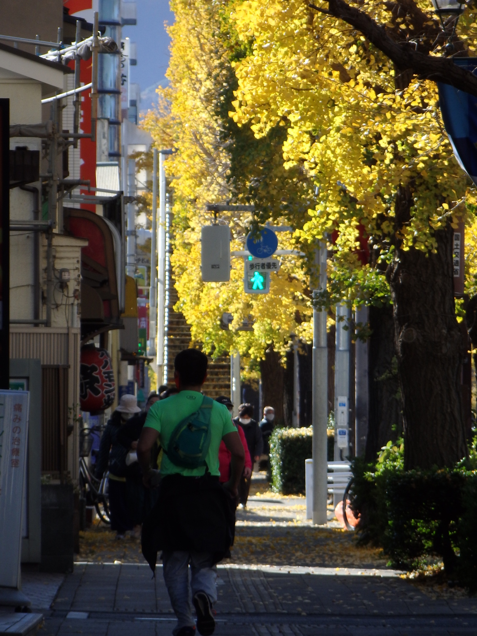 少しでも和らげようと銀杏並木に出る