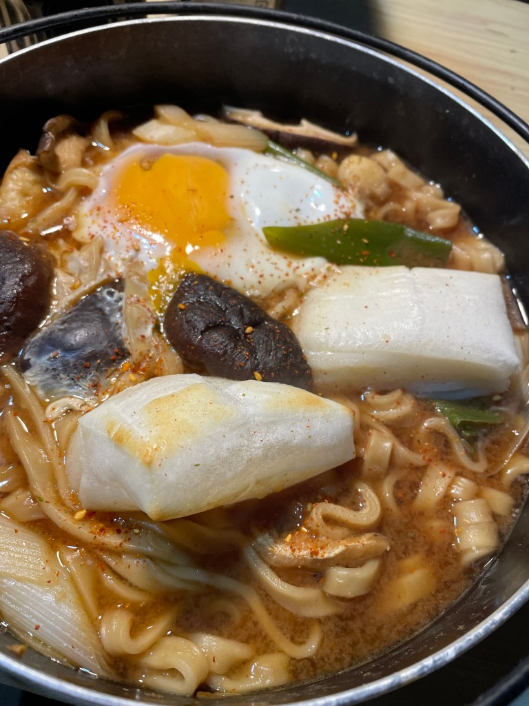 味噌煮込みうどんのを食べながら