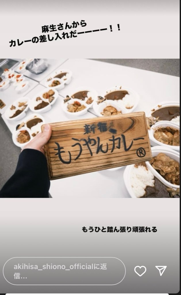 ドラマの現場では麻生さんの差し入れカレーまで